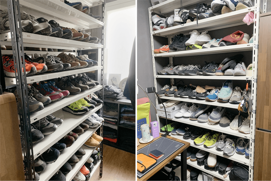 아마 30~40켤레씩 가지고 있을 거예요. 컬렉터들에 비해 많은 편은 아니에요. 일할 땐 신발을 얼마나 많이 가지고 있느냐가 중요하지 않아요. 신발 속성에 대한 이해, 기술, 지식. 이런 것들이 중요합니다.