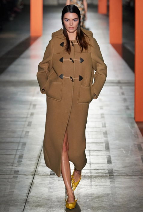 2023 FW 컬렉션에서 프라다(Prada)와 르메르(Lemaire)를 중심으로 많은 하이패션 브랜드가 더플코트를 선보였어요. 프라다 패션쇼에서는 미국 유명모델인 켄달제너(Kendall Jenner)가 더플코트를 입어 화제가 됐죠. 제너가 입은 프라다의 더플코트는 기존 핏과 달라요. 슬림한 실루엣에 종아리를 덮을 만큼 긴 롱 더플코트죠. 르메르는 반대로 품이 넉넉한 오버사이즈 더플코트를 소개했어요. 과감하게 후드를 제거한 것이 특징이죠.